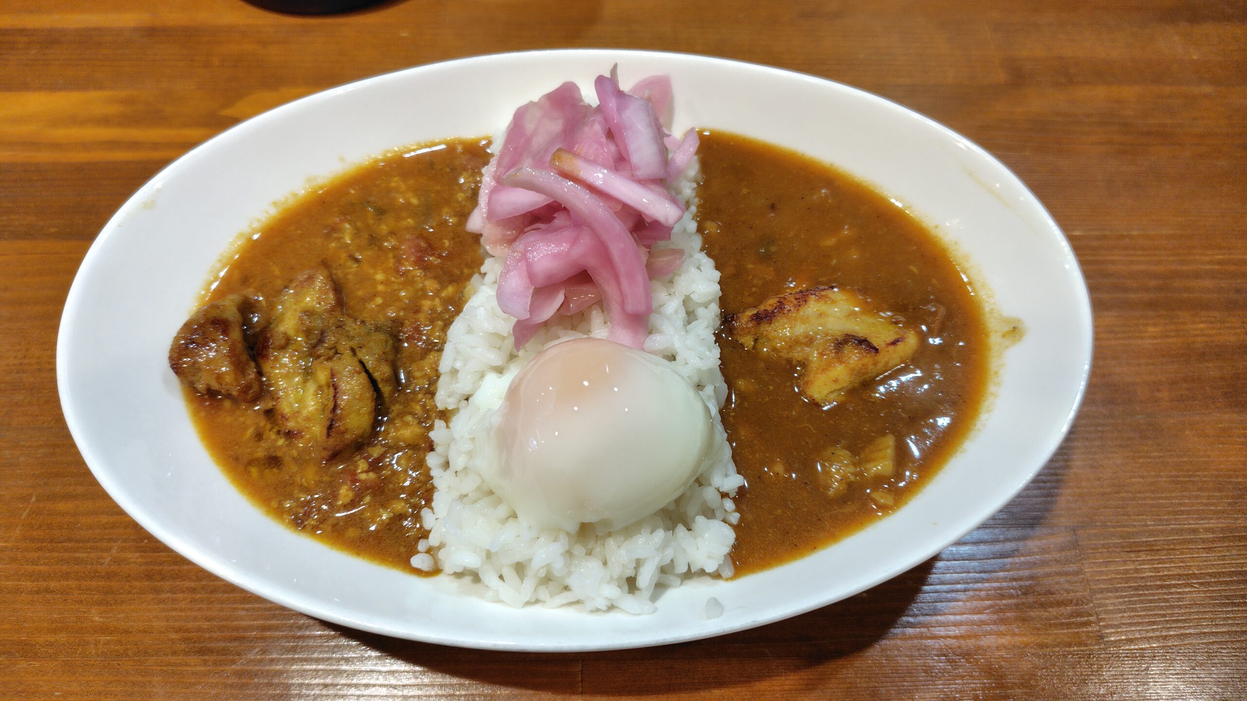 2025.8.14 「JIROBE」あいがけカレー(ビーフ+キーマ)+温泉玉…… 神戸元町駅の南側、元町商店街より1つ北側の通り沿いにある「JIROBE」でランチ。13時頃…