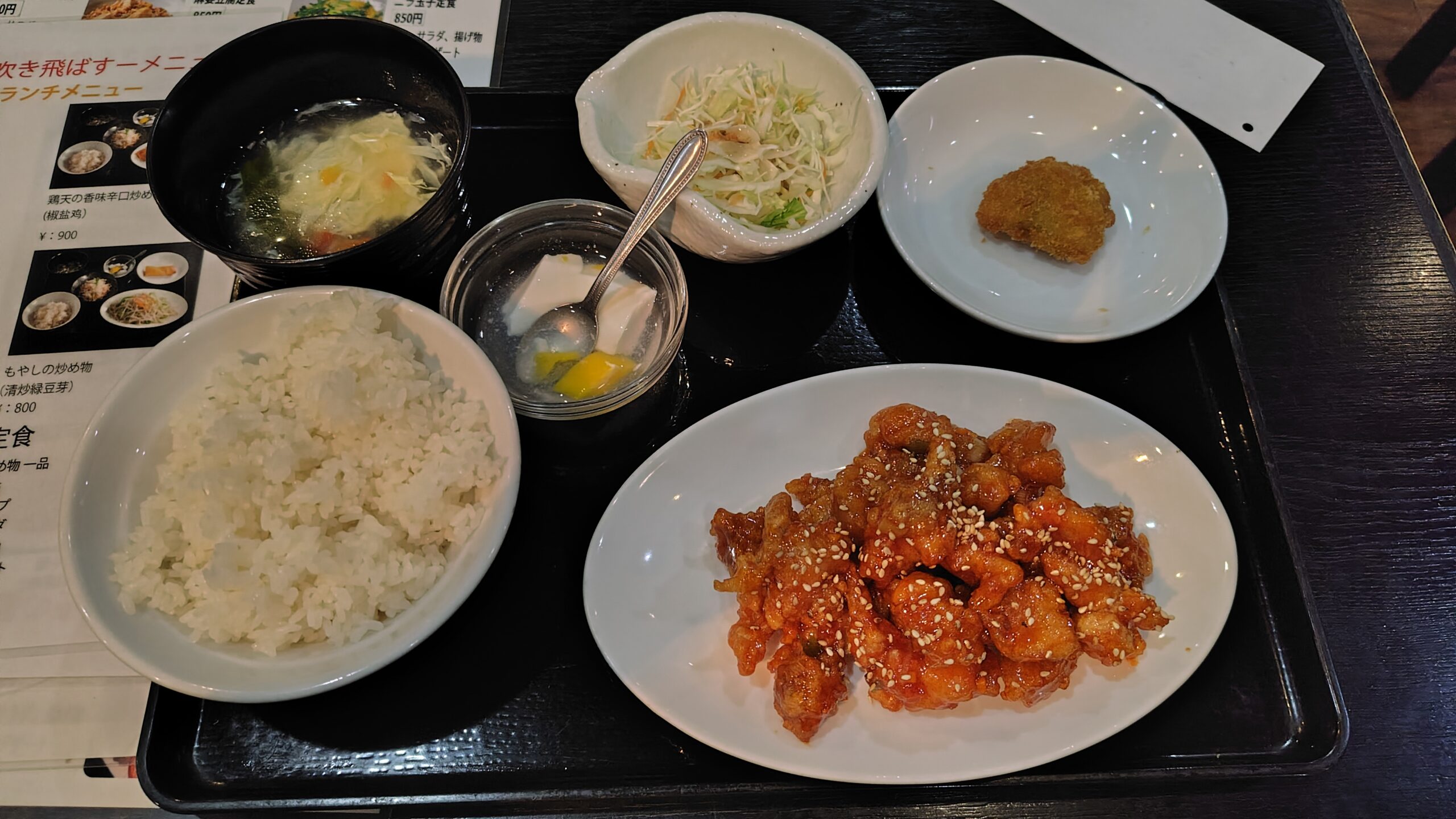 2025.8.20 「福縁」韓国風鶏天甘辛炒め物ランチ 堺筋本町駅の南西側にある「福縁」でランチ。12:15頃の到着で店内は半分くらいの入りでした…