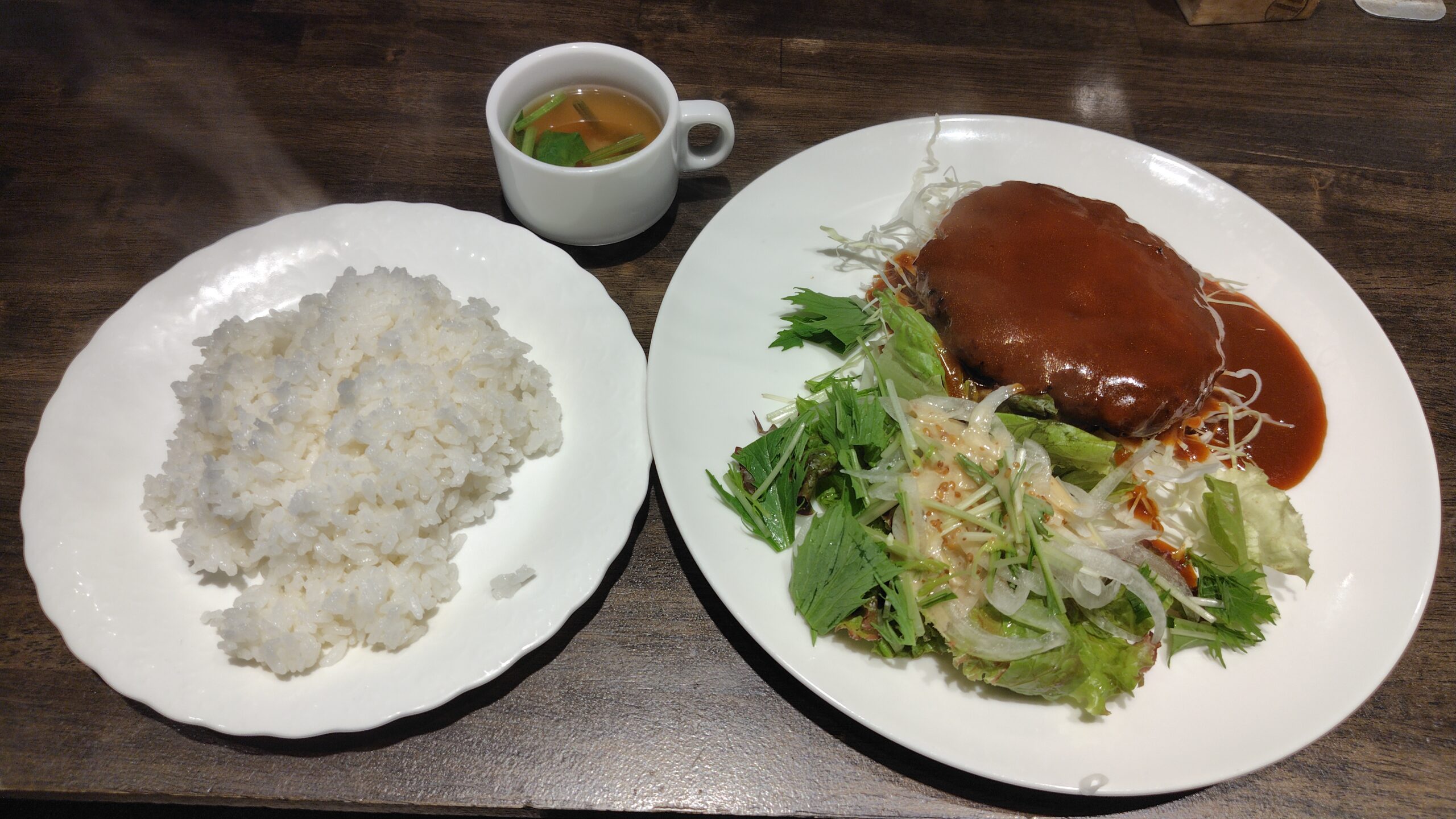 2025.8.30 「キッチン ソレイユ」手作りハンバーグ200g 京阪本線の香里園駅の東側にある「キッチン ソレイユ」でランチ。12:50頃の到着で、店内は…