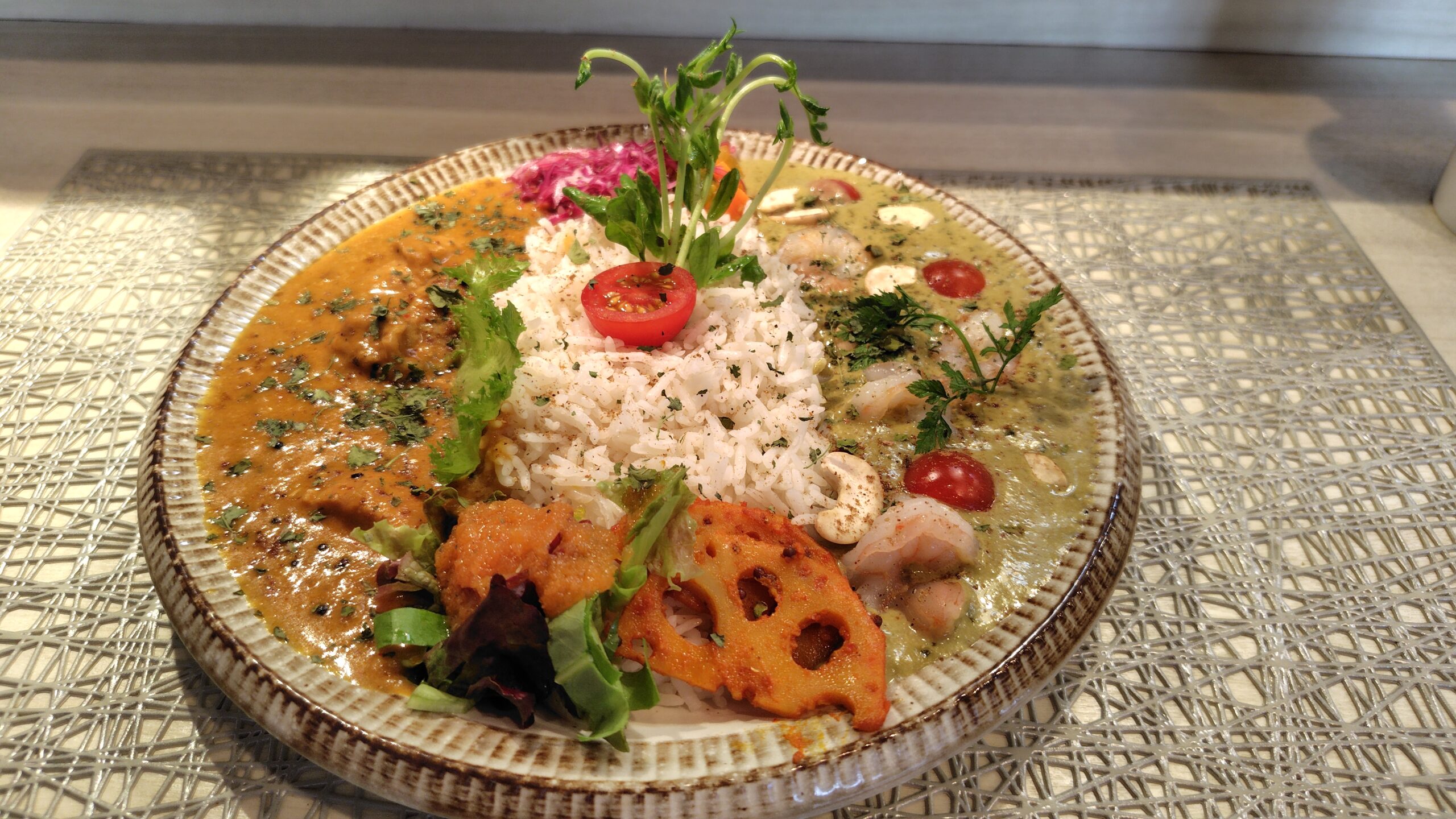 2025.8.1 「すぱいすにきいてみた@plants」あいがけカレー JR茨木駅の阪急茨木市駅方面にいったところにある「すぱいすにきいてみた@plants」でラ…