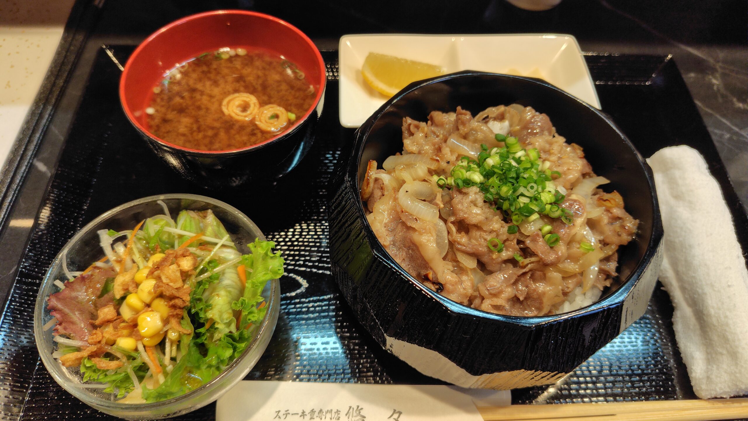 2025.8.5 「ステーキ重専門店 悠々」塩ダレ牛バラ重 阪神尼崎駅の北側にある「ステーキ重専門店 悠々」でランチ。12時前の到着で店内は誰もいませ…