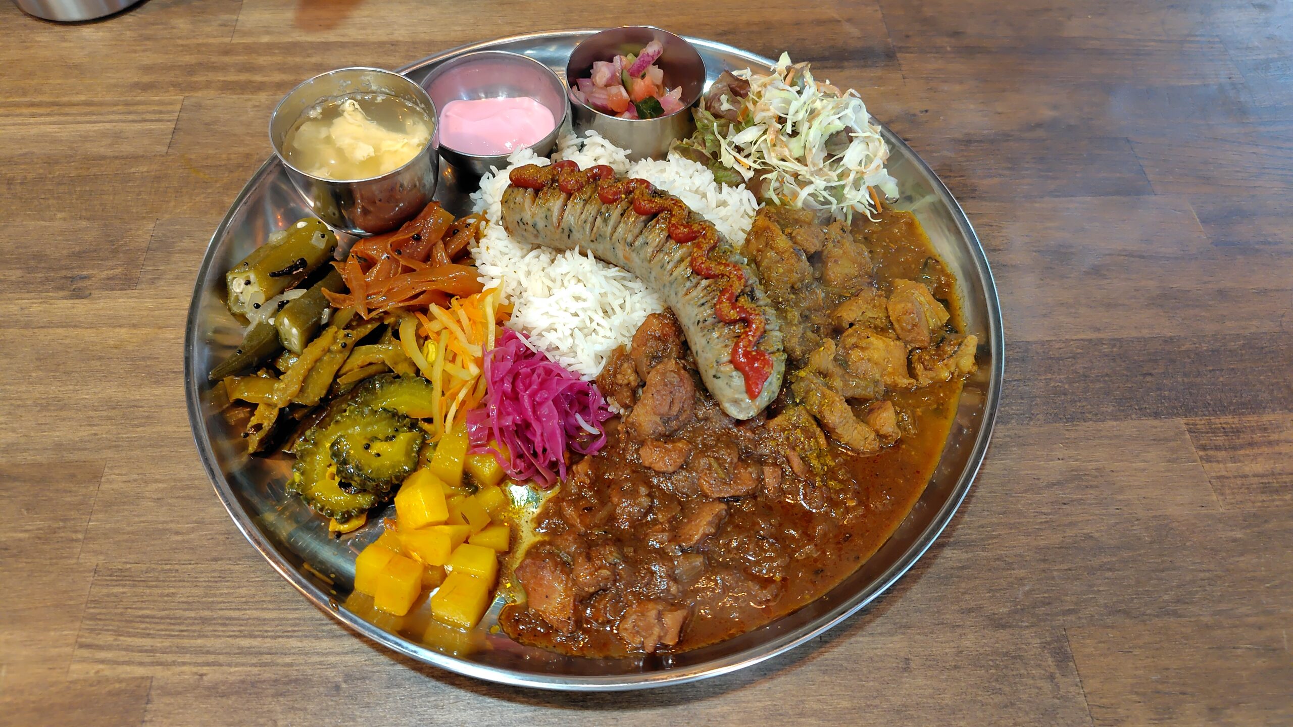 「DENIM」カリーヴルストとスパイスカレーのプレートの……