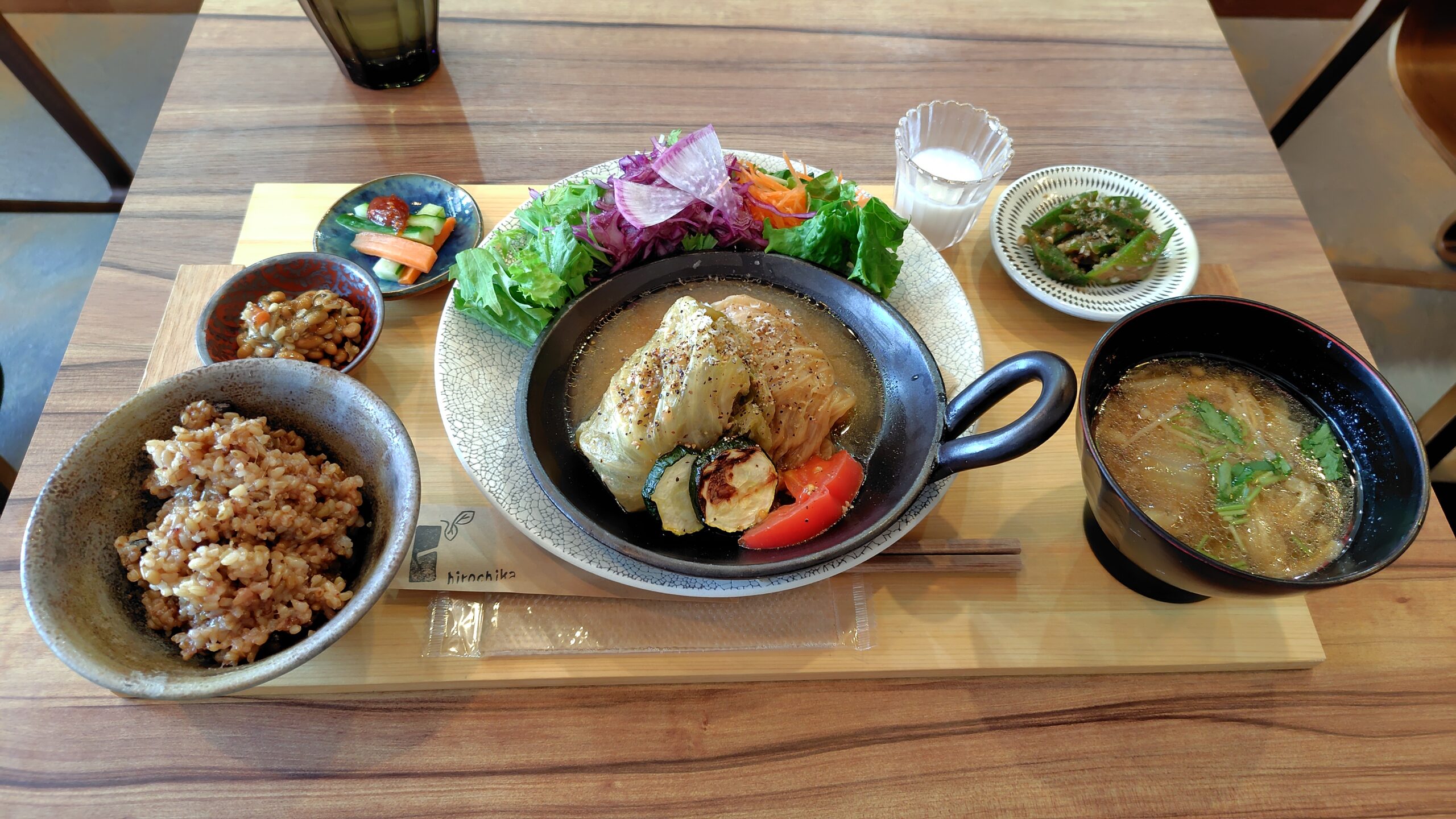 阪急千里線の南千里駅の南側にある発酵・おばんざいカフェ「ヒロチカ」でランチ。12:10頃の… -