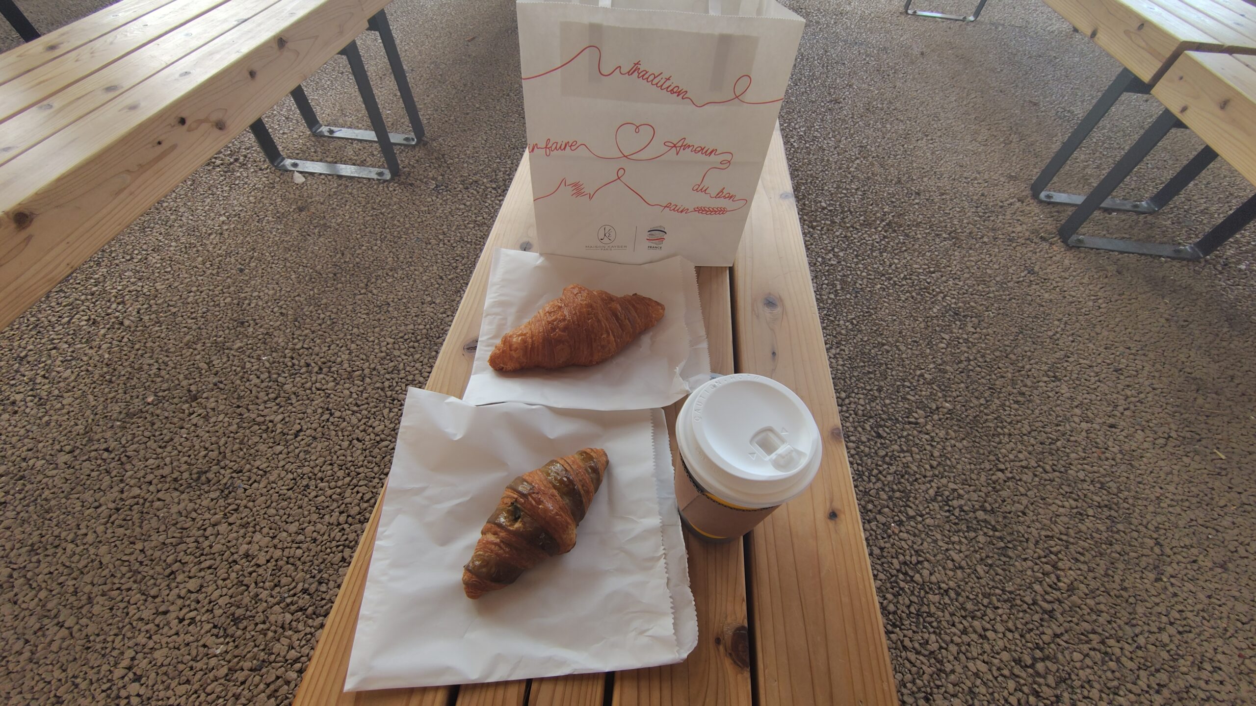 フランスパビリオンのパン屋。9:25頃から並び、10分強でクロワッサンとクロワッサン抹茶と… -