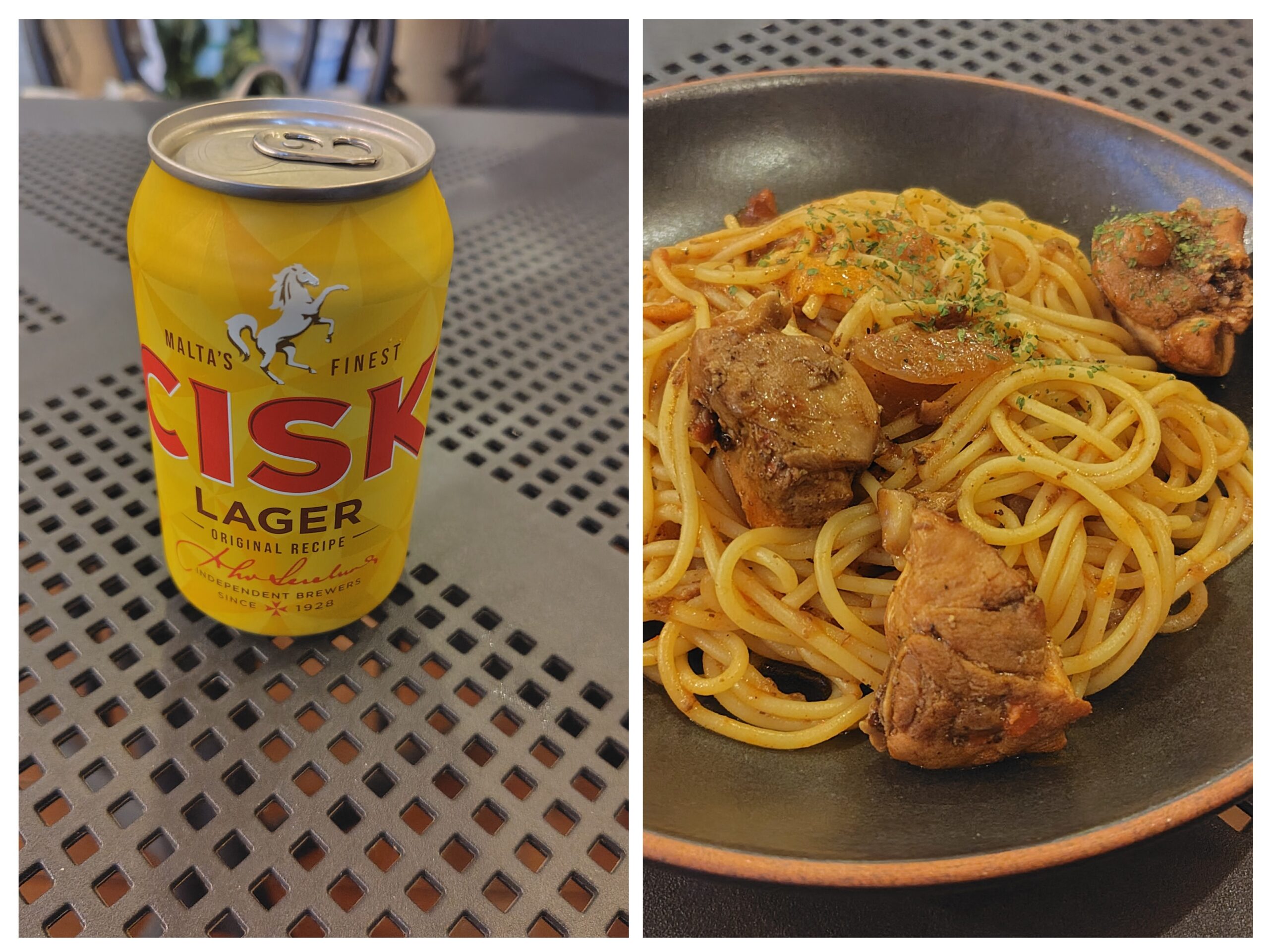 「マルタパビリオン」うさぎのシチューパスタ+ビールCIS……